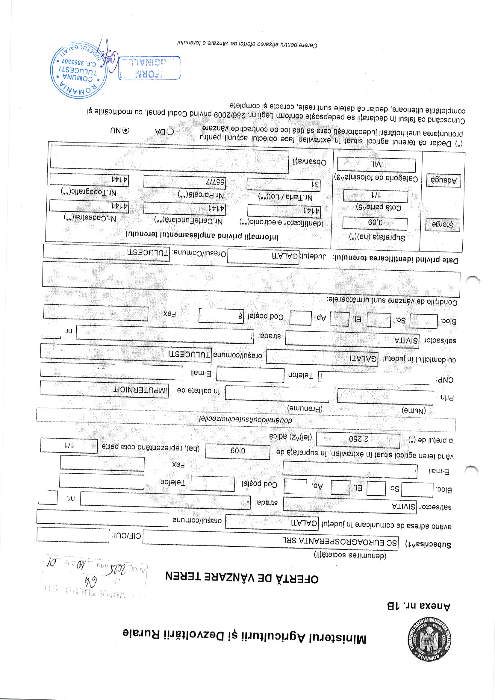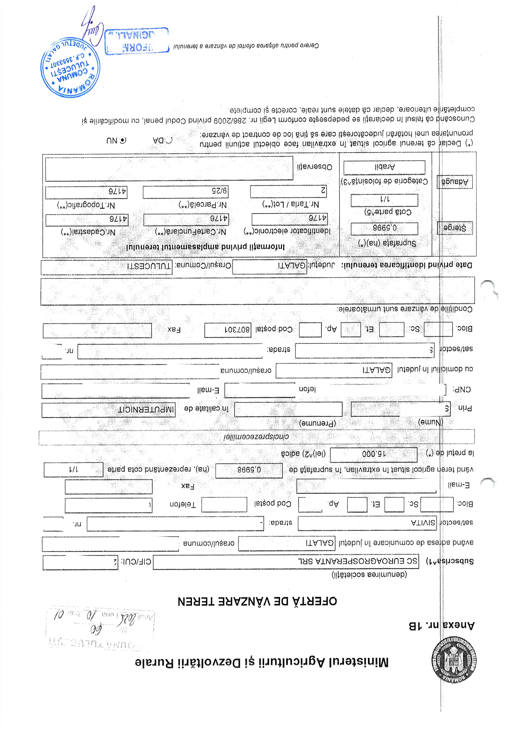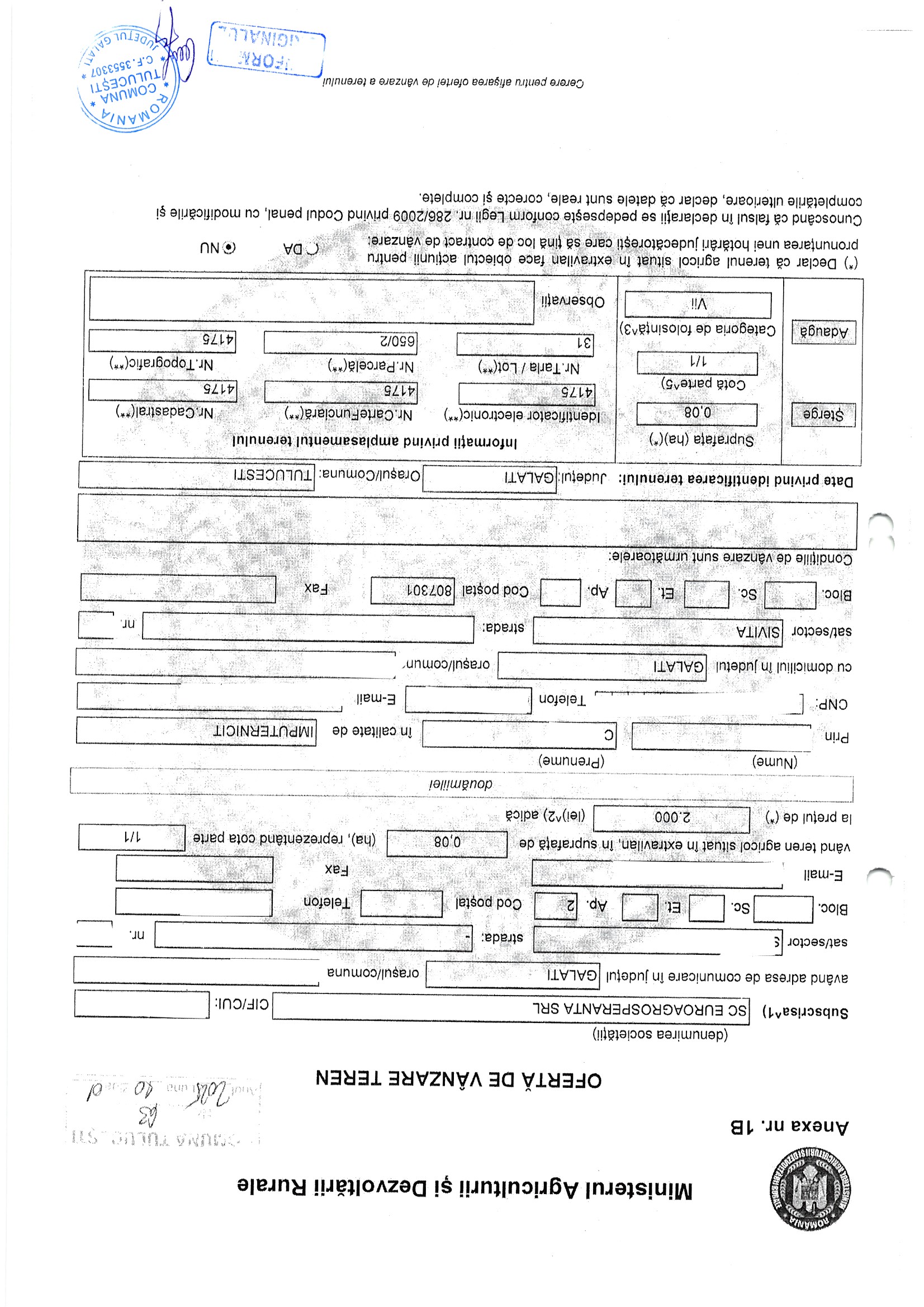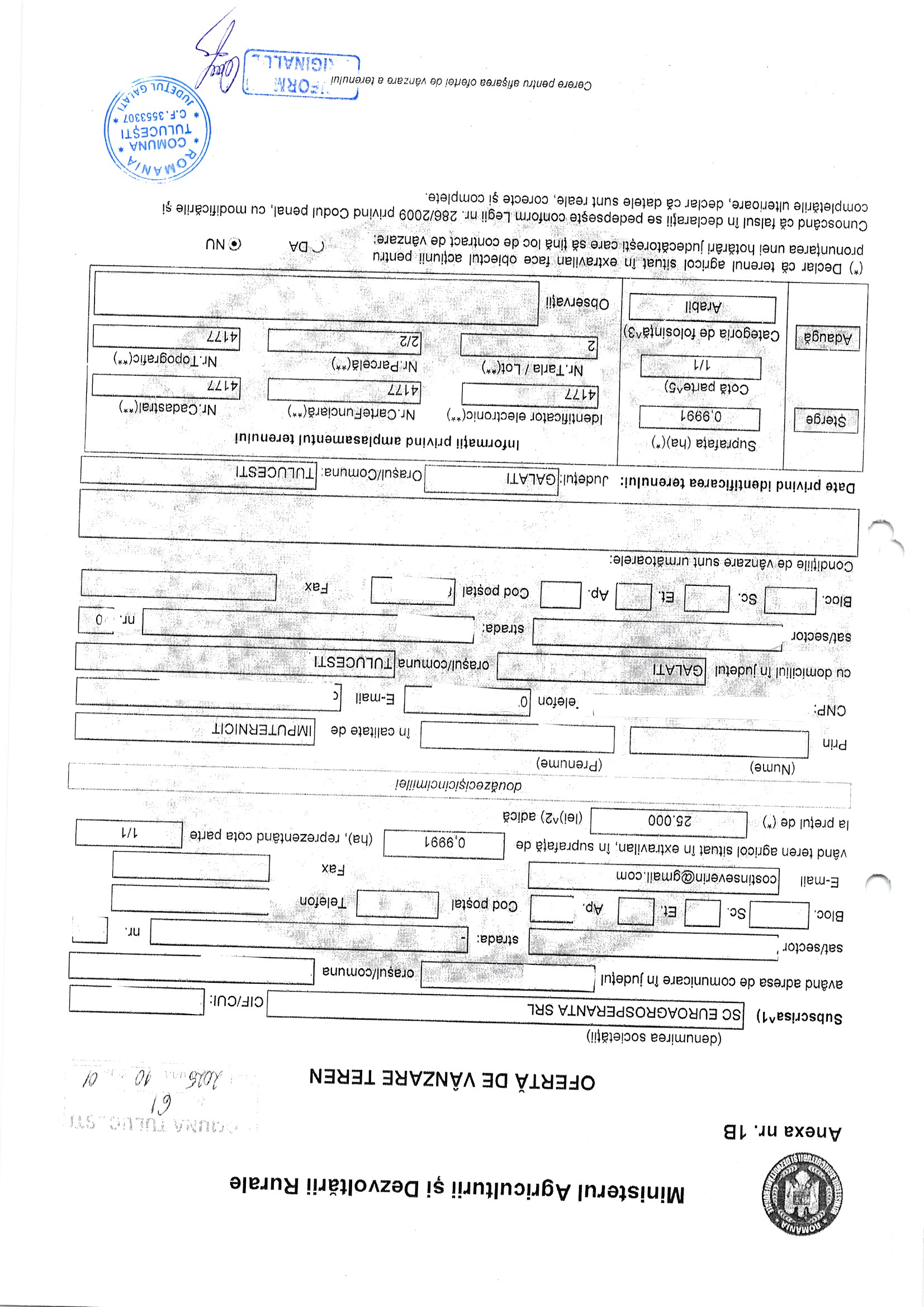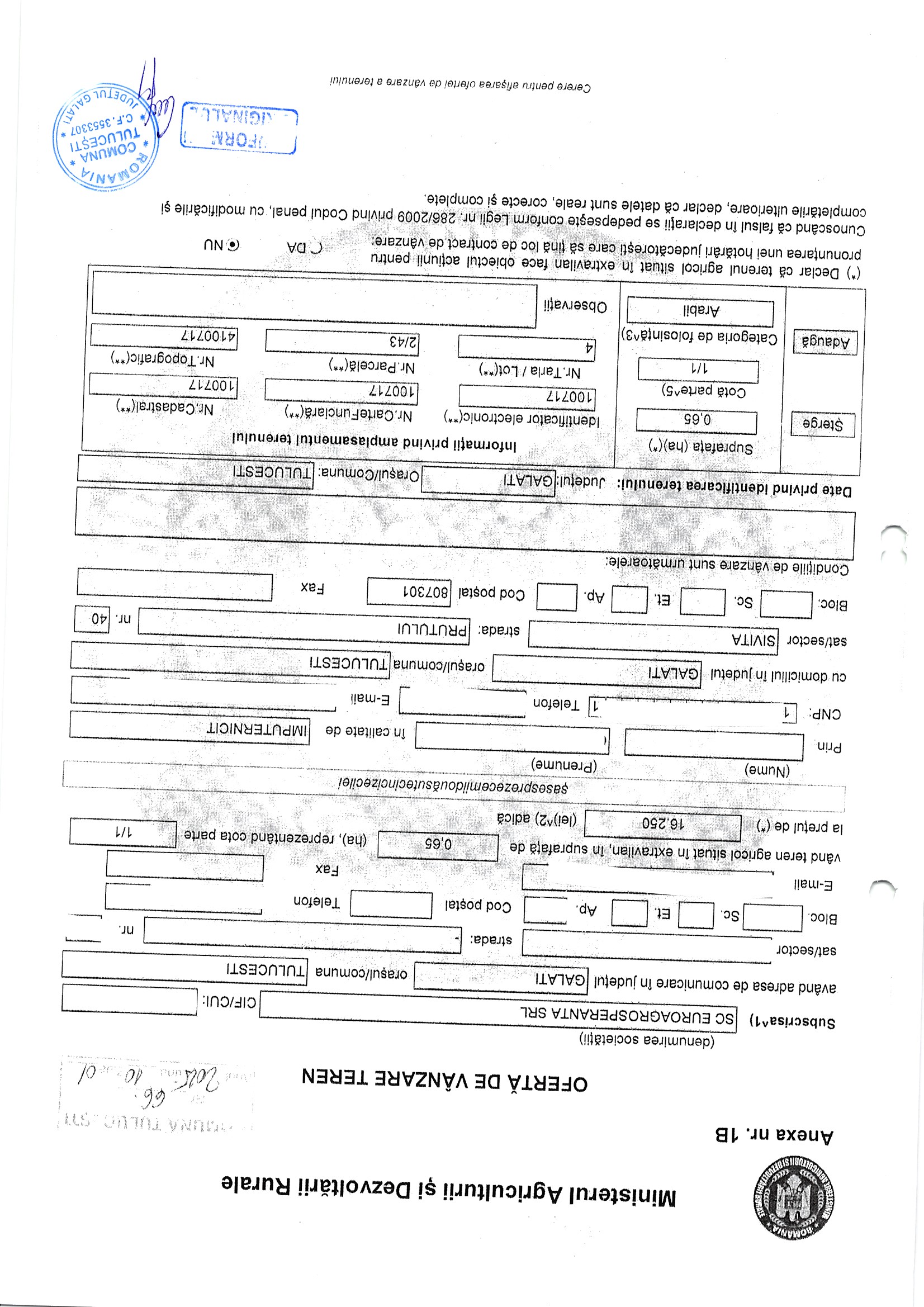 15.10.2025 | SC Euroagrosperanta SRL | 123 | Tulucesti | 0.9991 HA | Dinu Florentina |