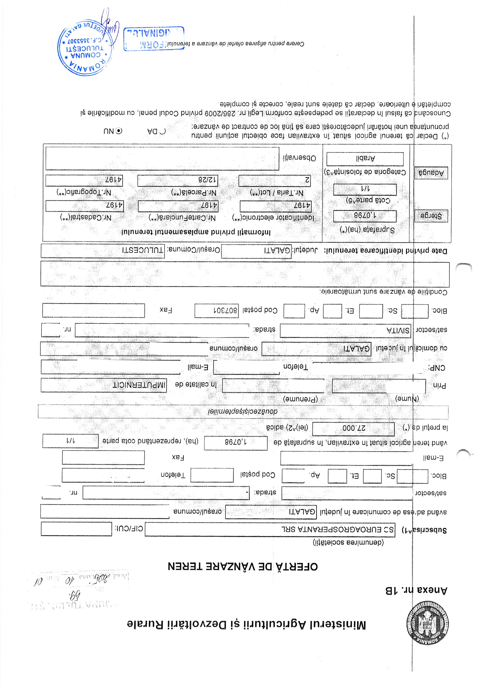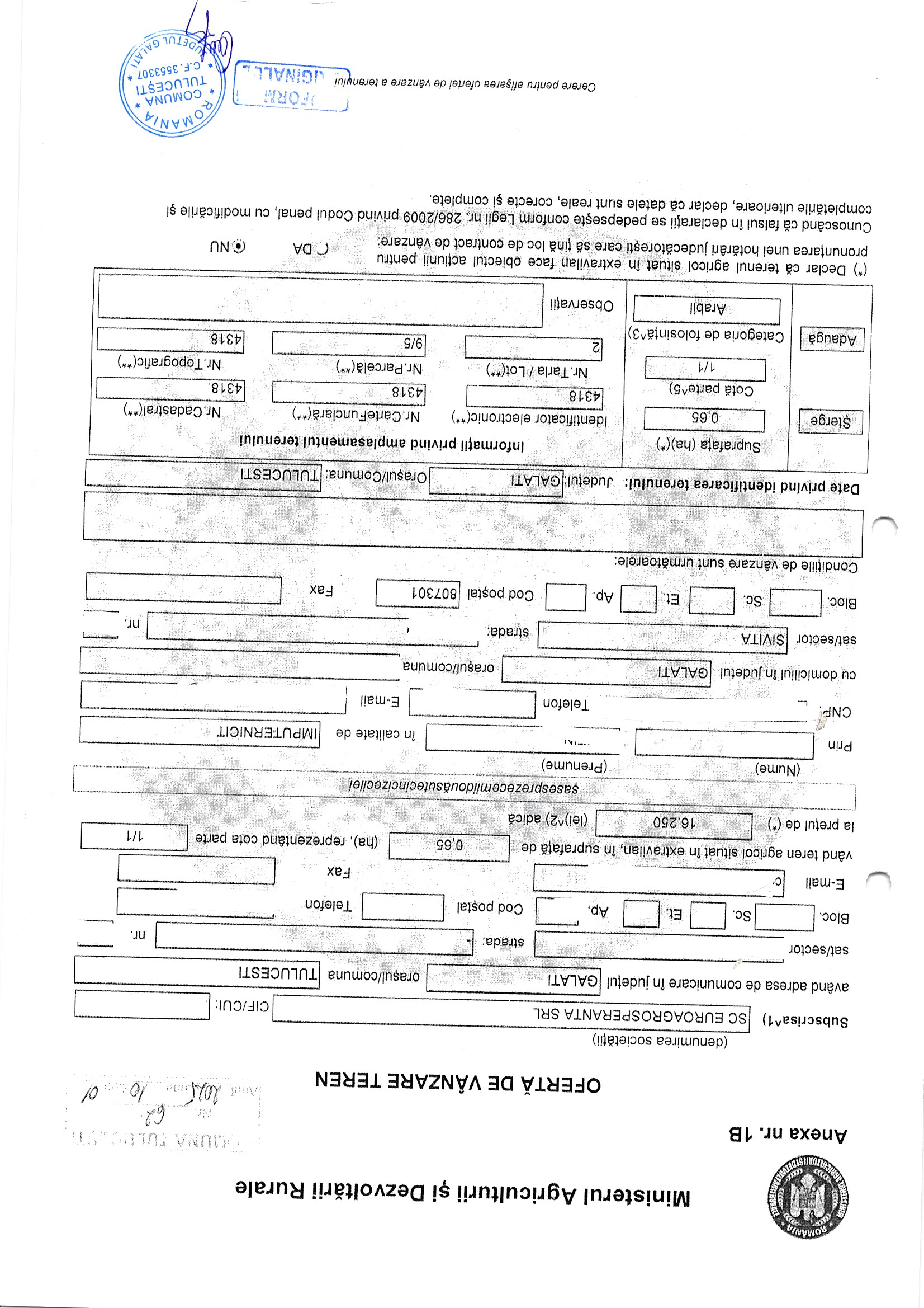 15.10.2025 | SC Euroagrosperanta SRL | 123 | Tulucesti | 1.0798 HA | Dinu Florentina |
