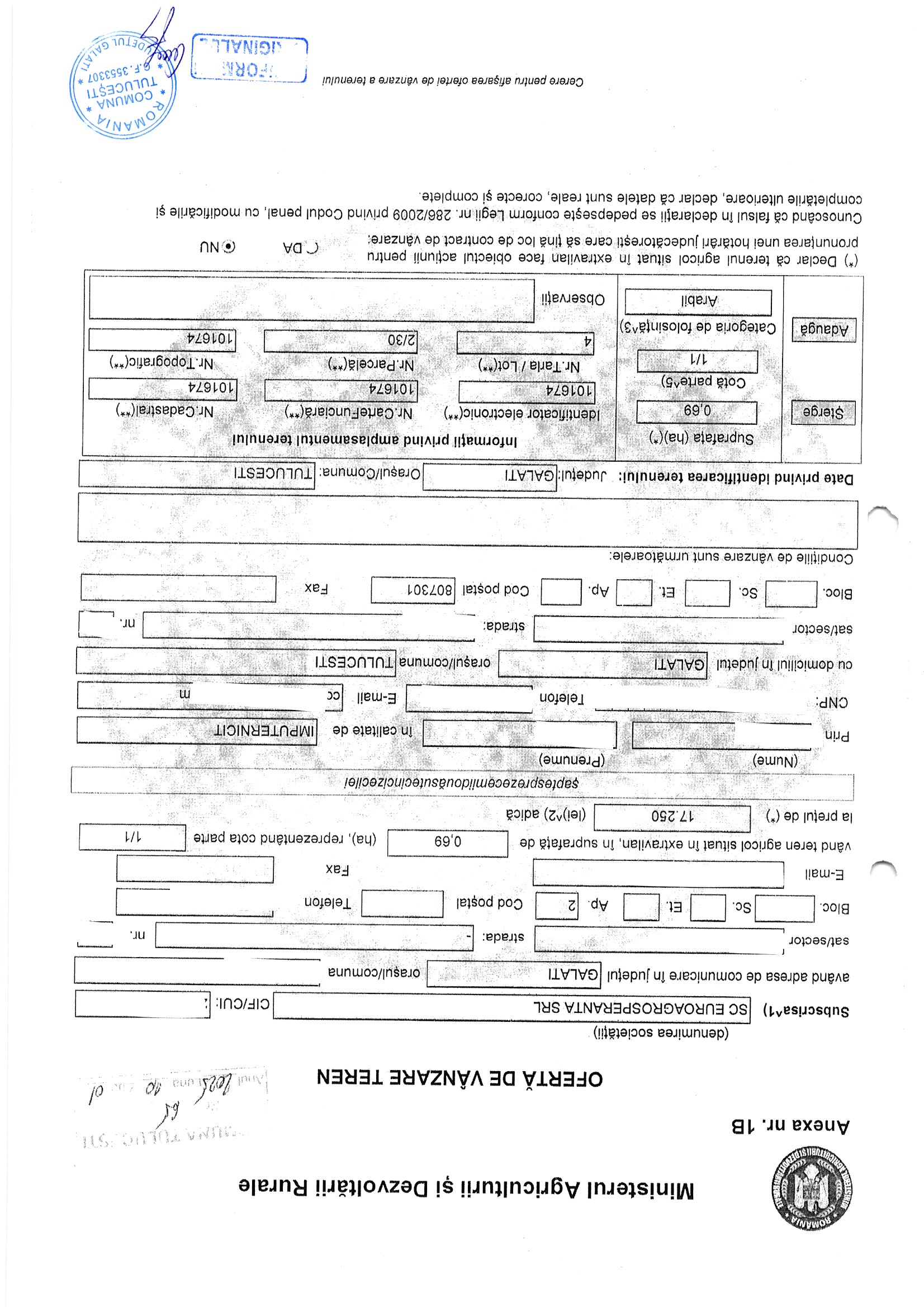 15.10.2025 | SC Euroagrosperanta SRL | 123 | Tulucesti | 0.5998 HA | Dinu Florentina |