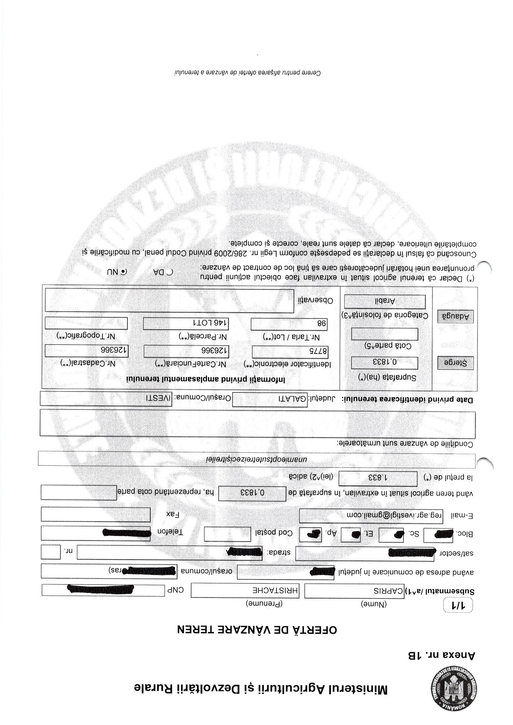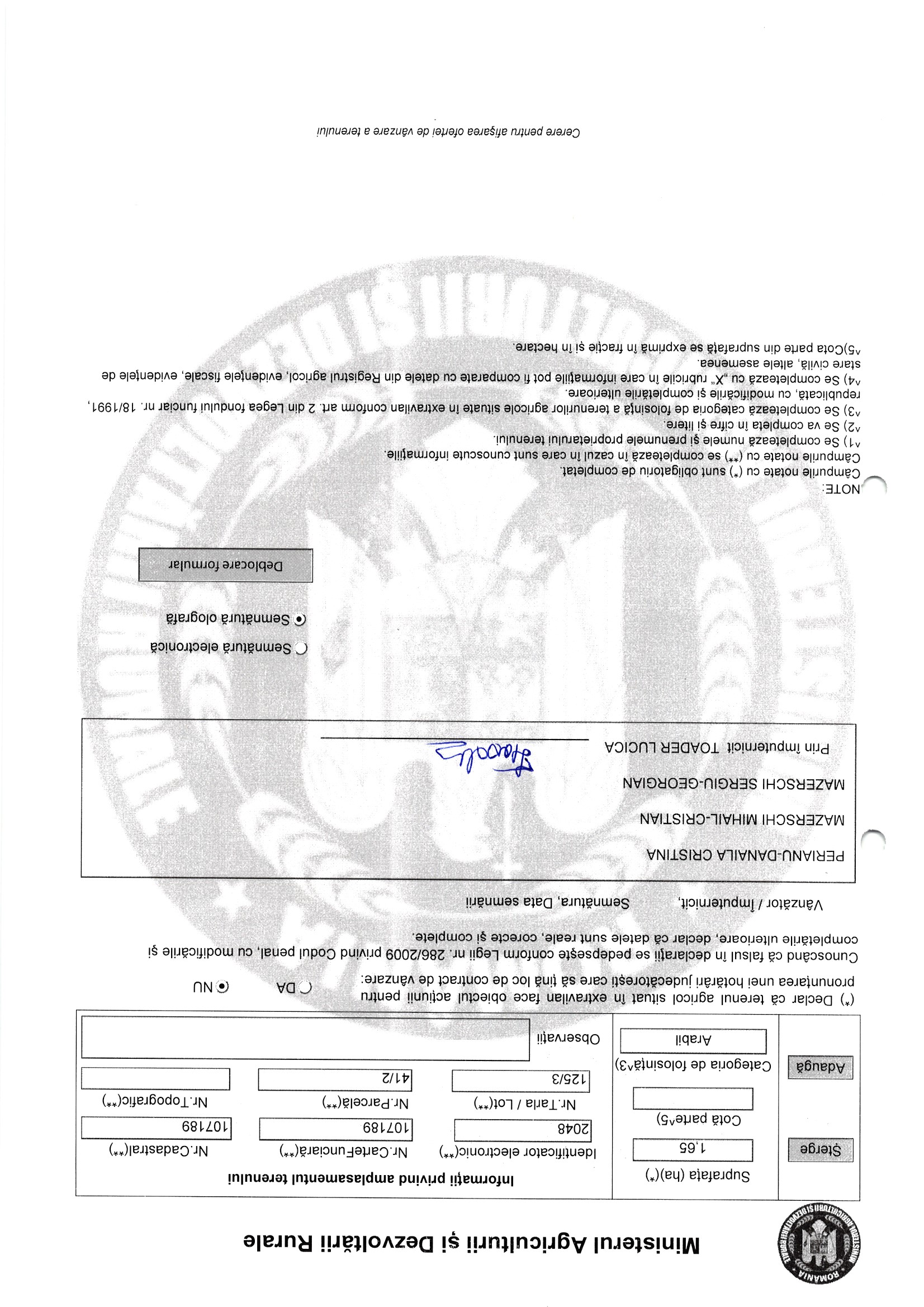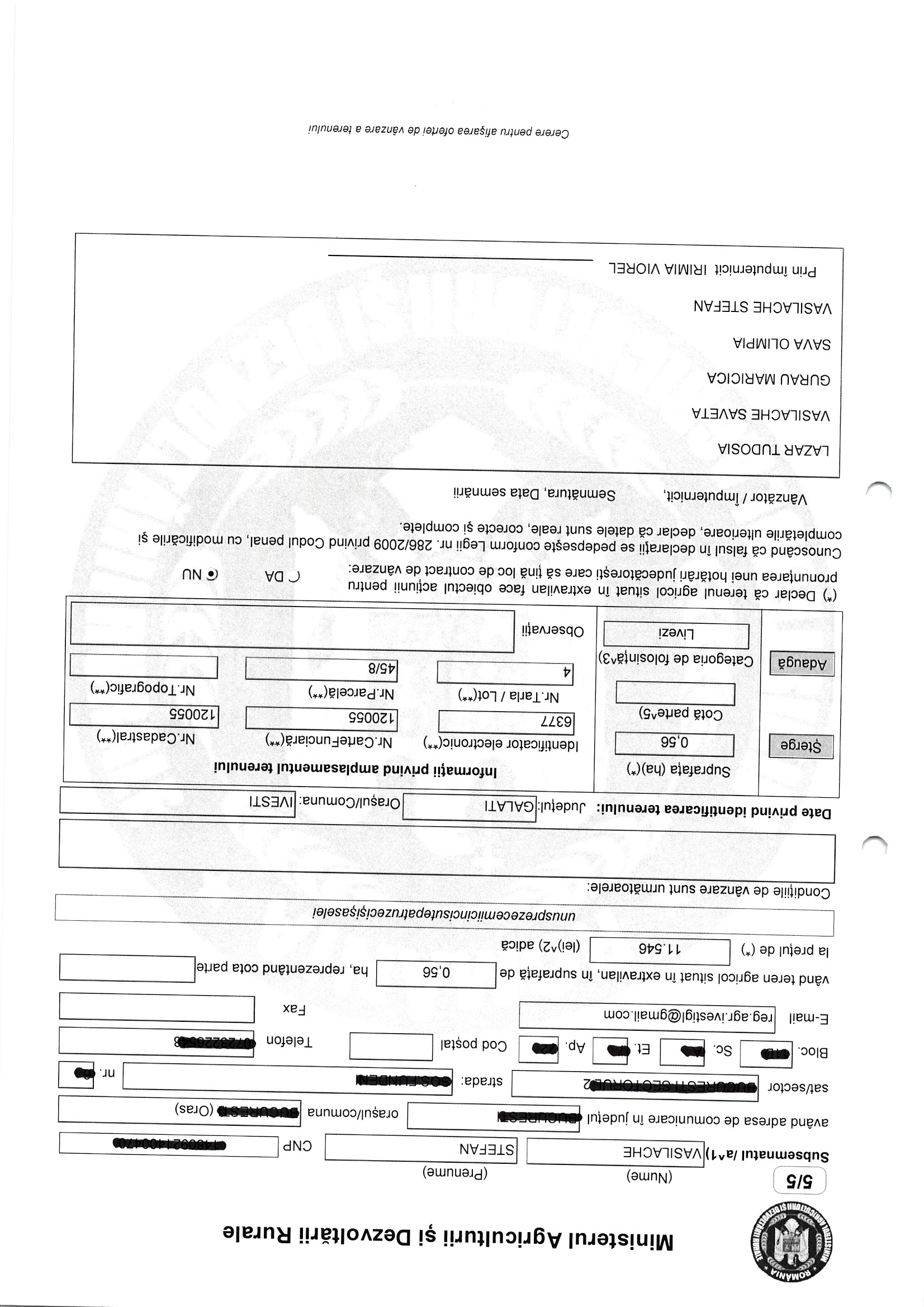 15.10.2025 | Lazar Tudosia etc | 123 | Ivesti | 0.56 HA | Dinu Florentina |