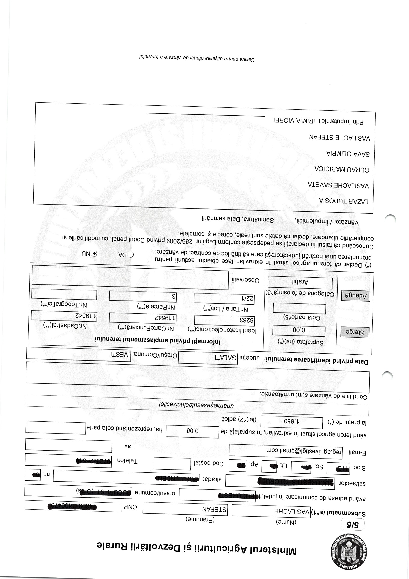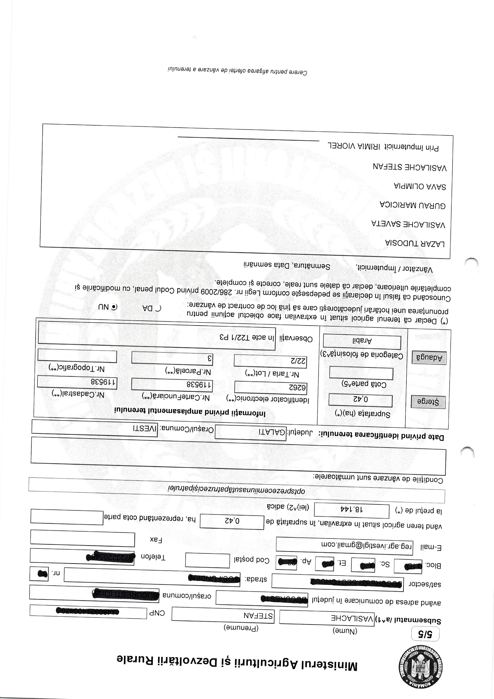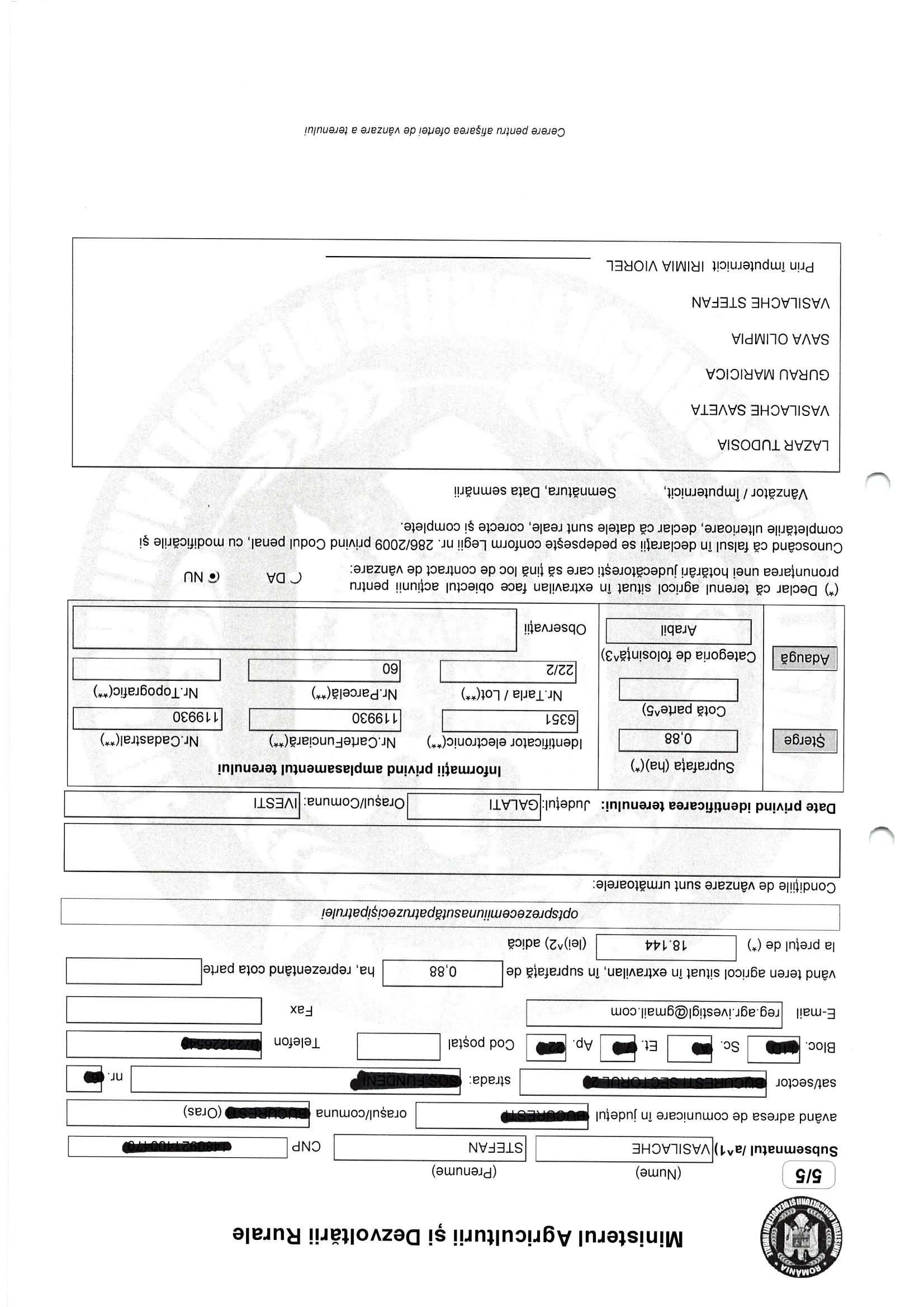 15.10.2025 | Vasilache Stefan | 123 | Ivesti | 0.88 HA | Dinu Florentina |