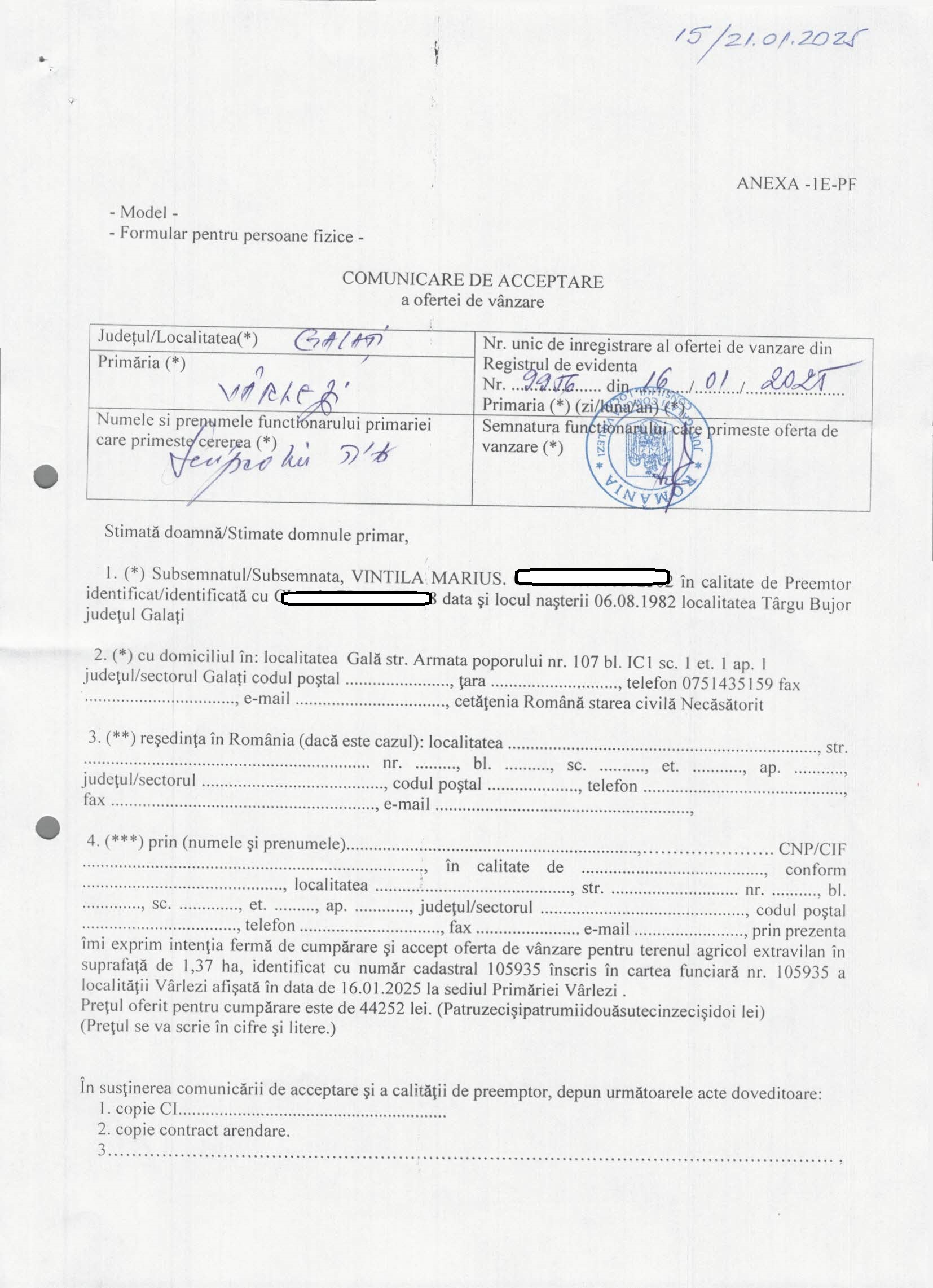 | 15.09.2025 | BERTEA MARIANA | 123 | Varlezi | 1.50 HA | ZAHARIA CATALIN |