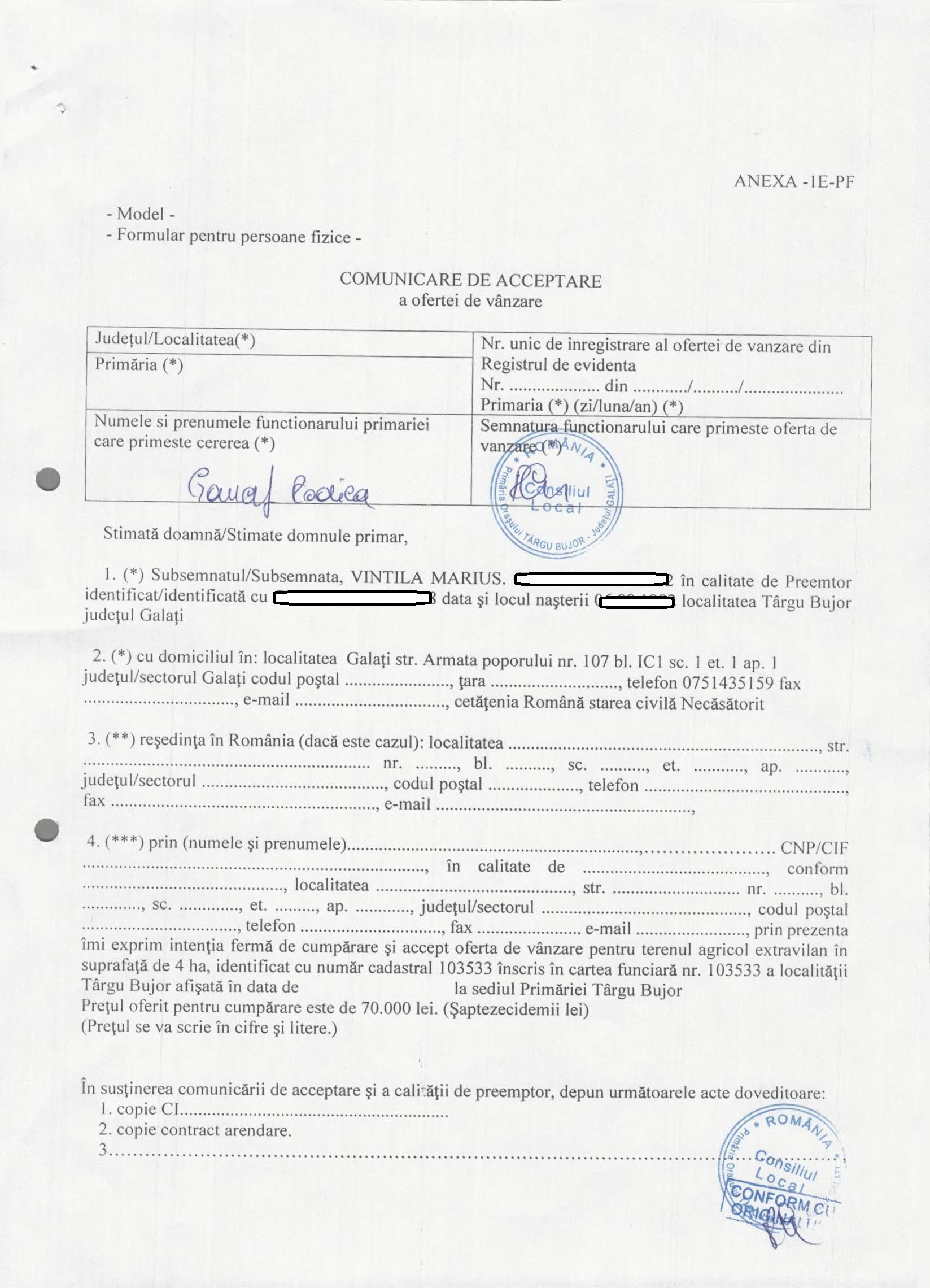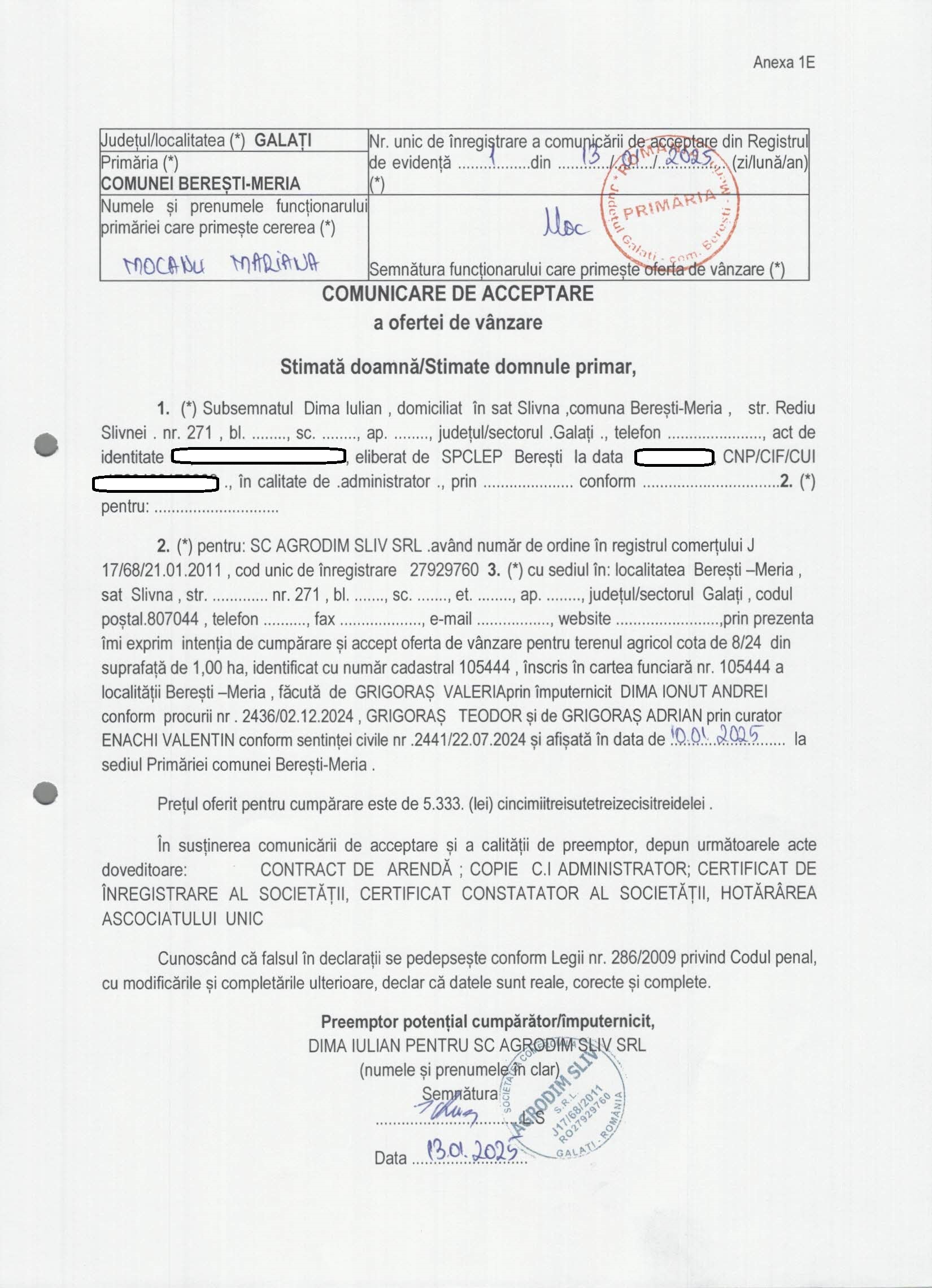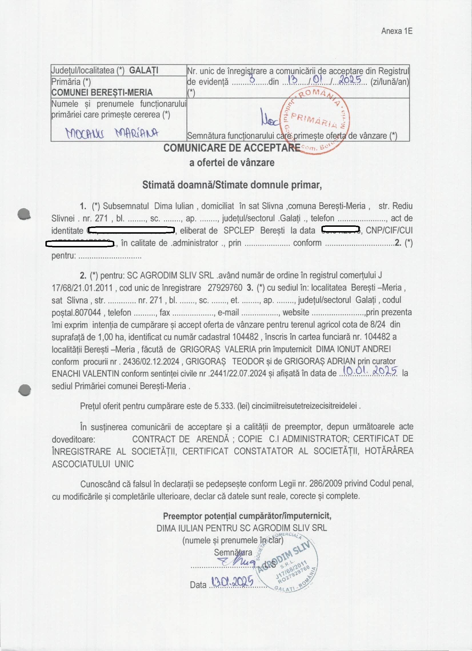| 15.09.2025 | TIRON IANCU | 123 | Umbraresti | 1,35 HA | Chelariu Laurentia Mihaela |