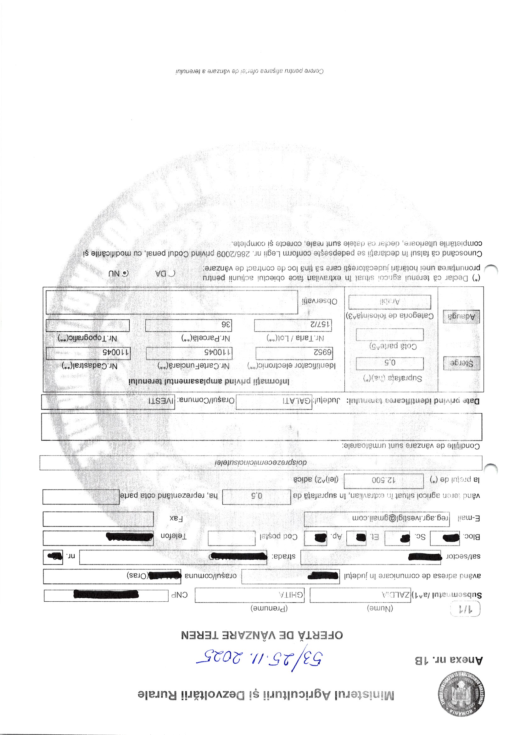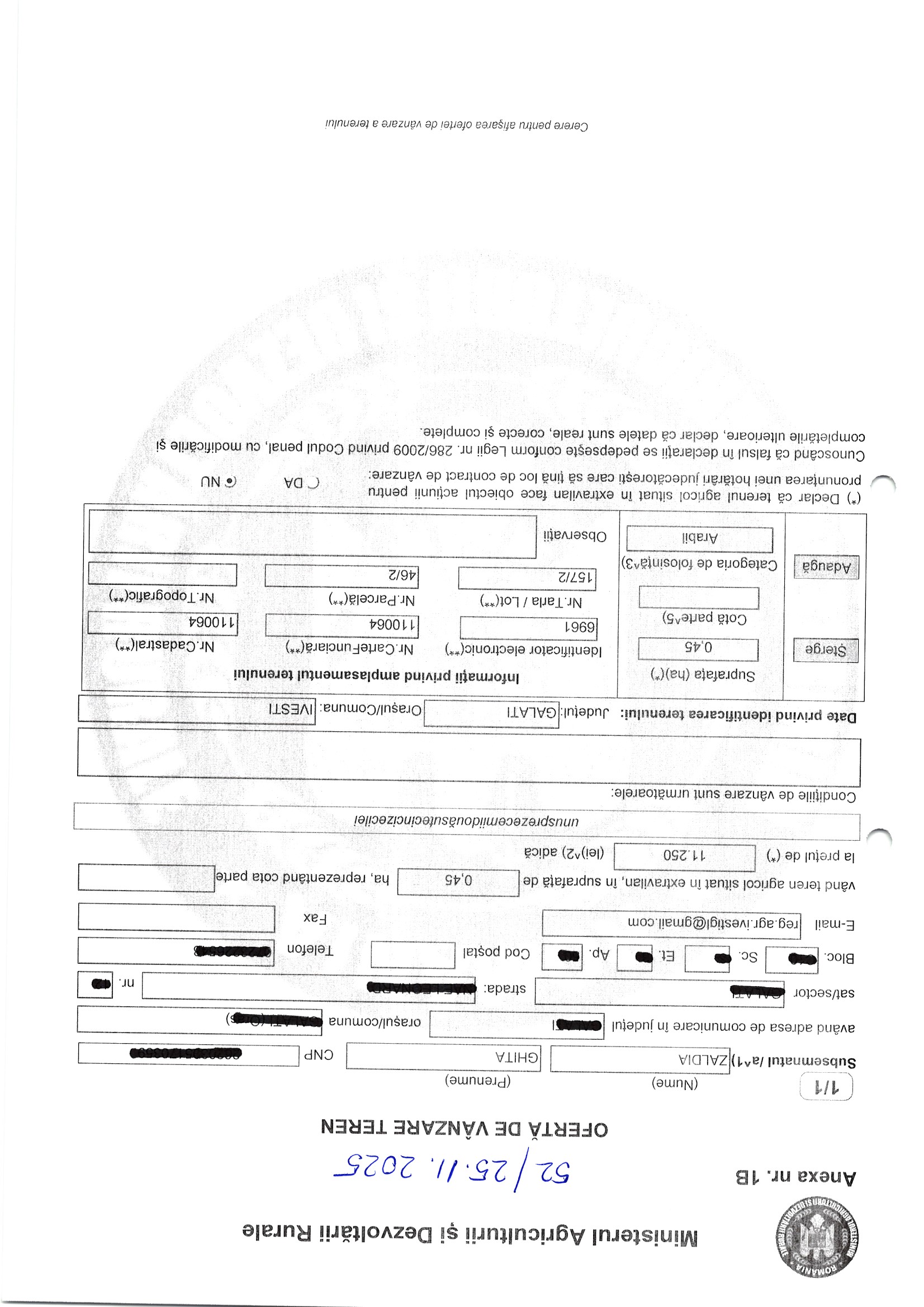 | 02.12.2025 | Zaldia Ghita | 123 | Ivesti | 0.50 HA | Dinu Florentina |