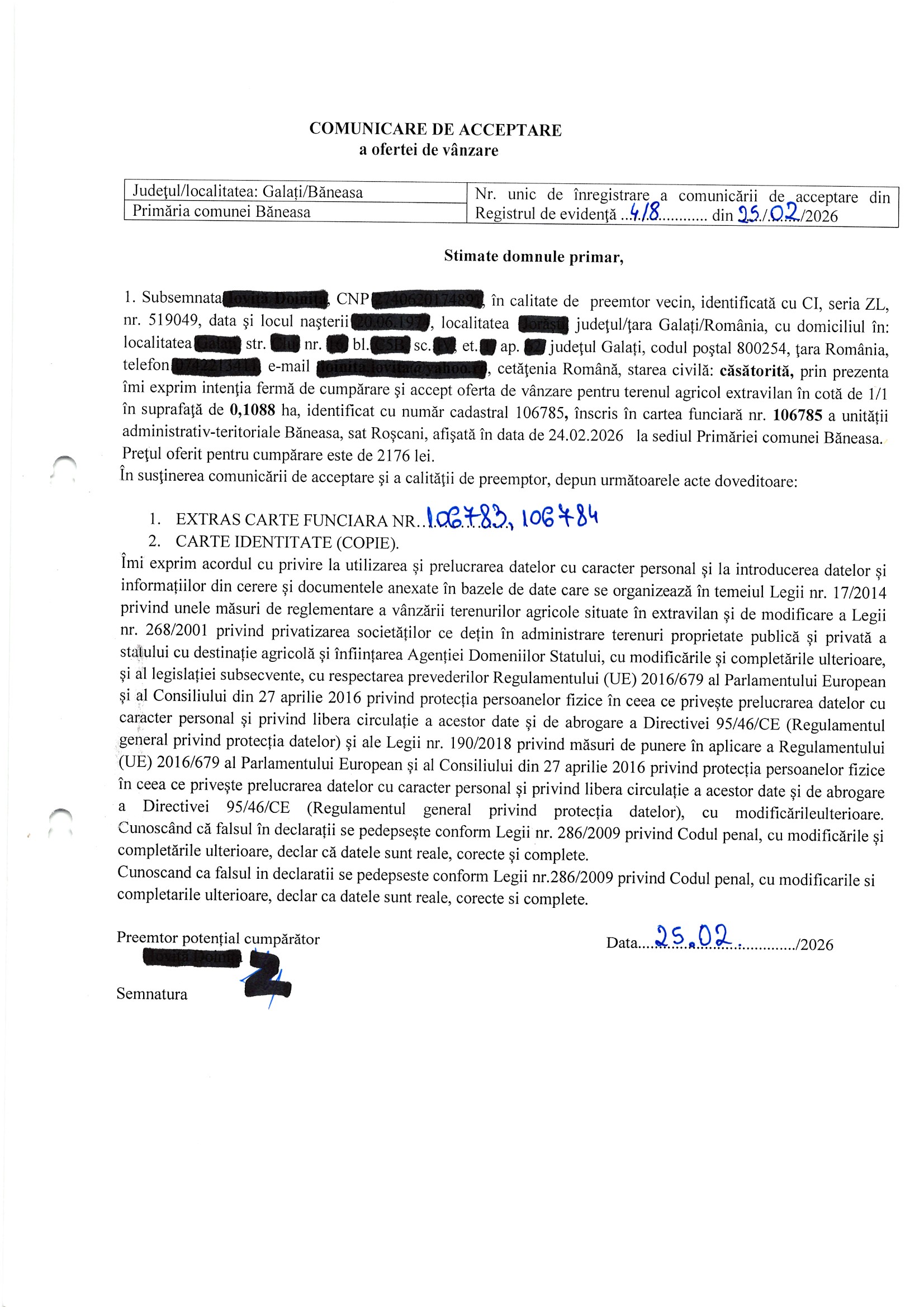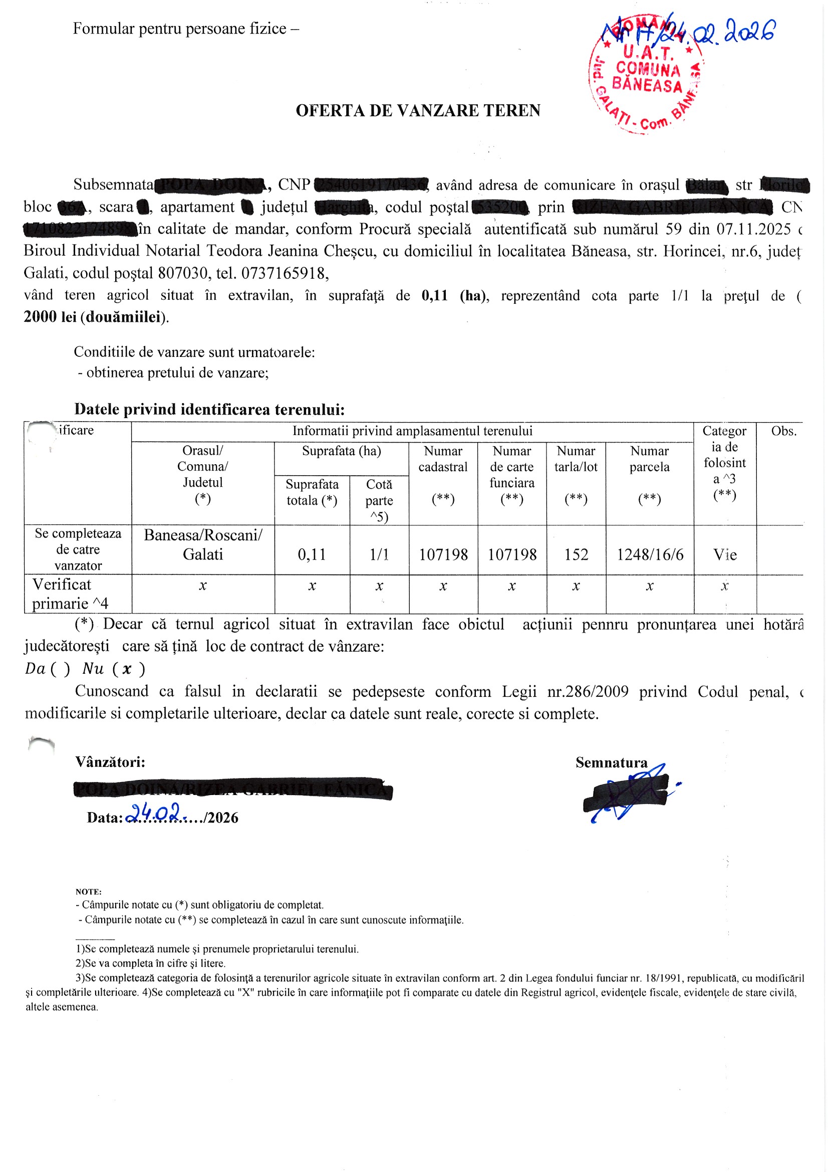 | 02.03.2026 | Apostu Verginia etc | 123 | Ivesti | 0.50 HA | Dinu Florentina |