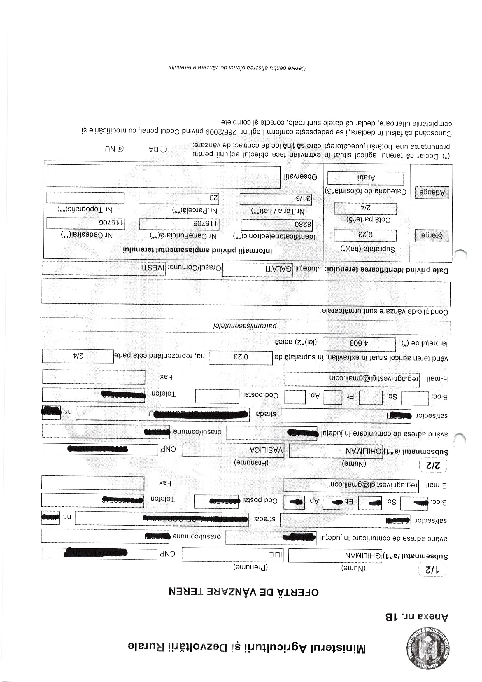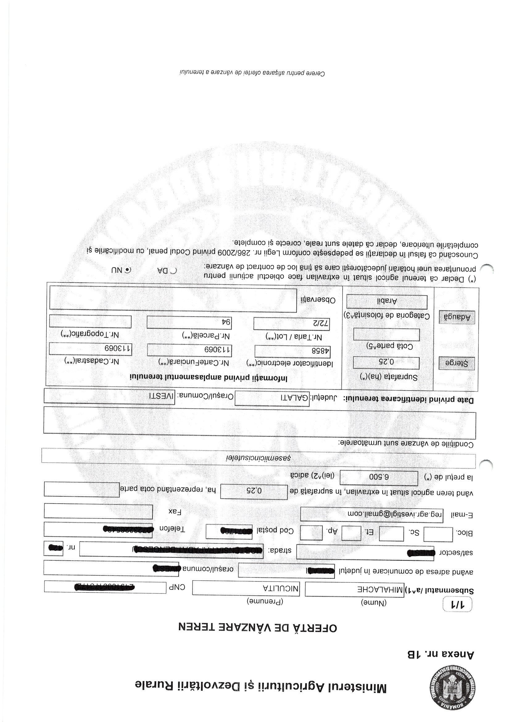 | 15.10.2025 | Vasiliche Stefan | 123 | Ivesti | 0.42 HA | Dinu Florentina |