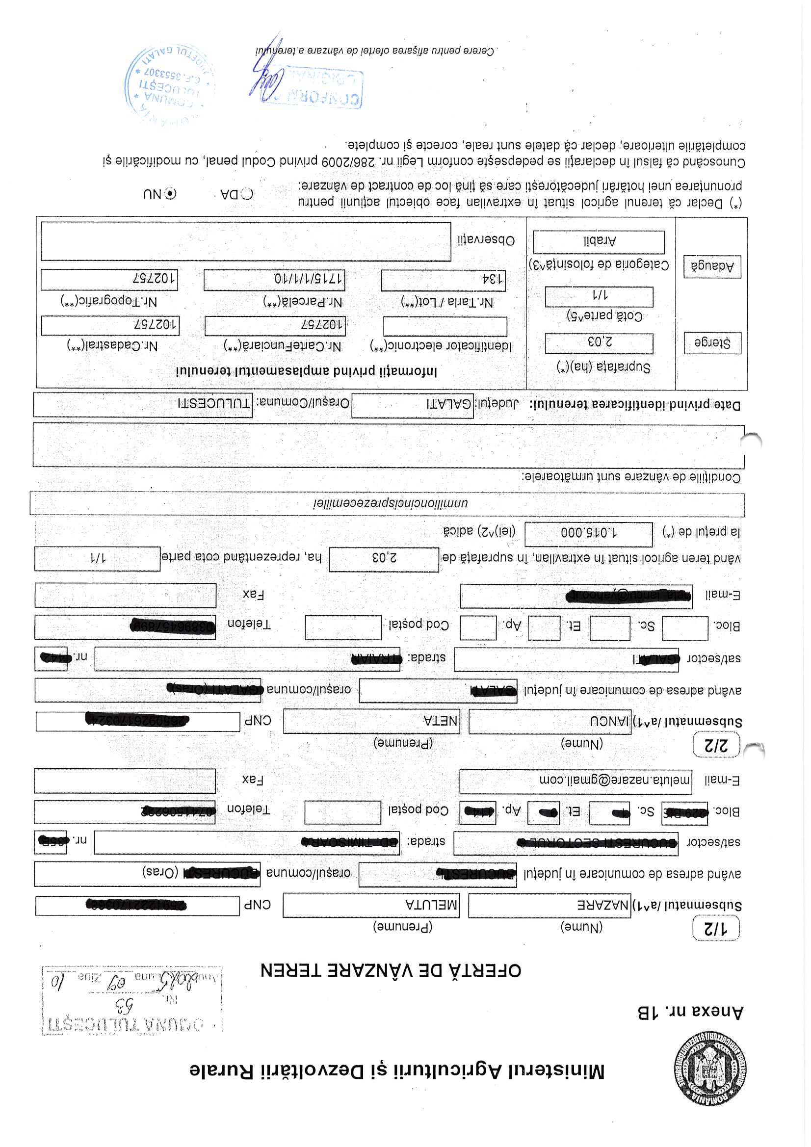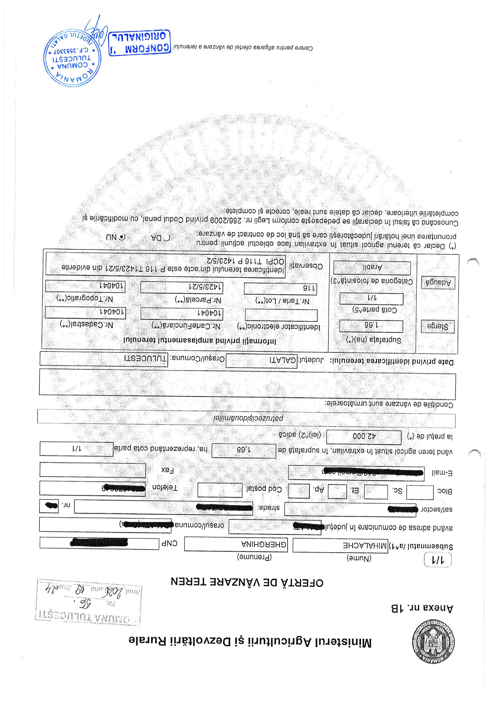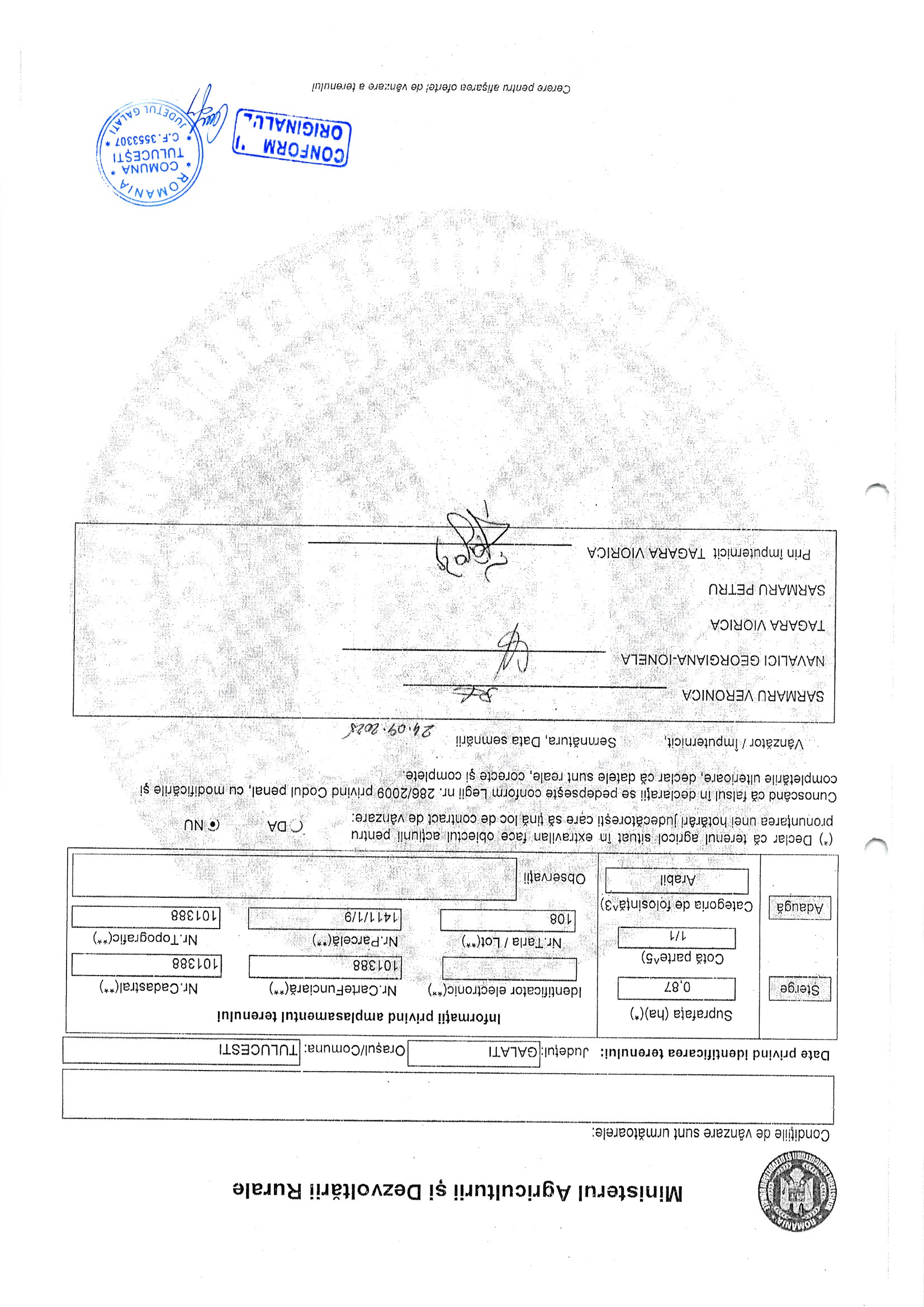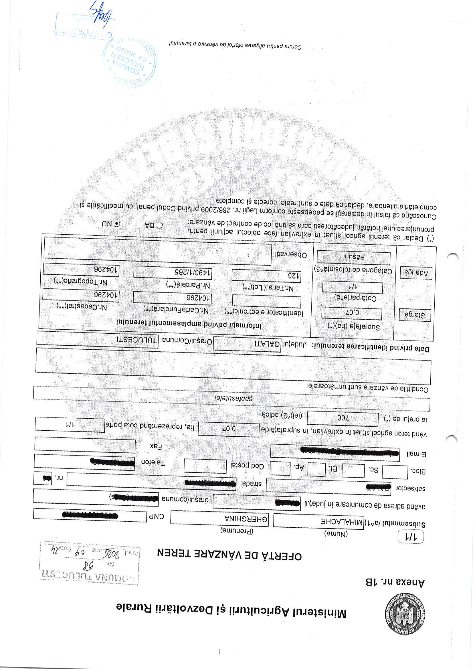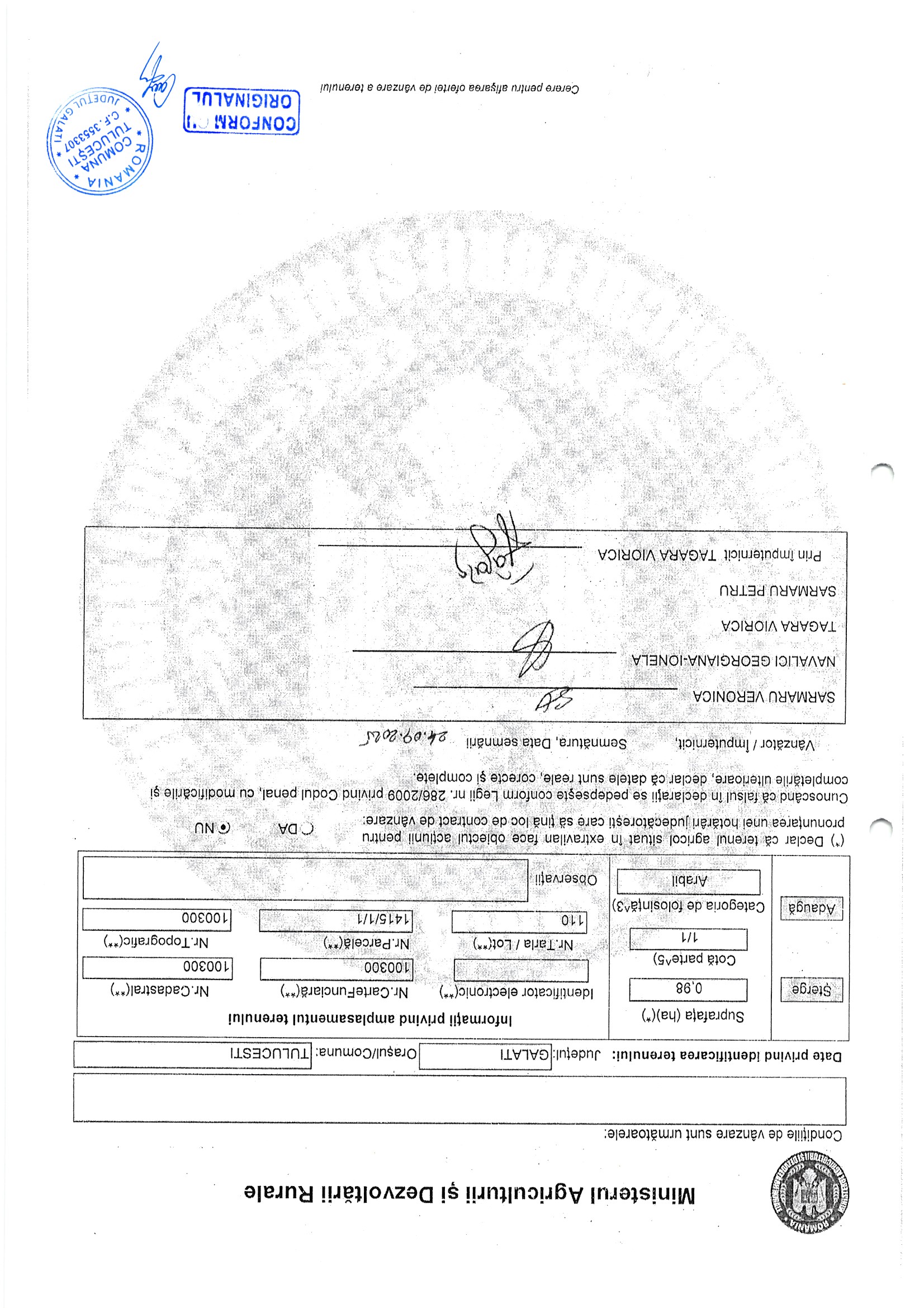 | 15.10.2025 | Mihalache Gherghina | 123 | Tulucesti | 0.2000 HA | Dinu Florentina |